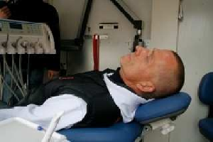 Dr. Hoffmann mit einem Patienten im Zahnmobil